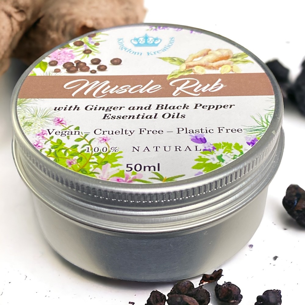 100% Natural Balm which may help towards the relief of muscle rub: Our Muscle rub balm provides a natural and effective way to help relieve muscle aches. The powerful blend of ginger and black pepper essential oils helps to soothe aching muscles. It Contains No Artificial Chemicals. We Offer A Natural Alternative To Factory Manufactured Chemical Infused Creams, We Only Blend By Hand Natural Herbal Ingredients As We Believe In Natures Storehouse Everything Is Available.